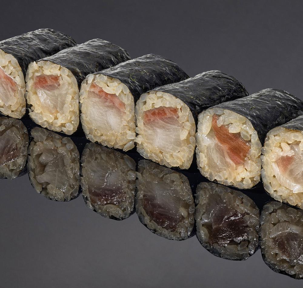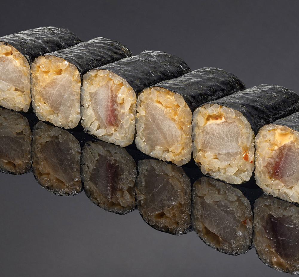 Рис, нори, шима-аджи(японская ставрида), соус спайси