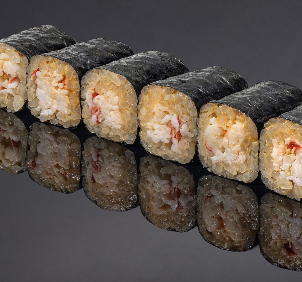 рис для суши, краб камчатский, нори, соус спайси