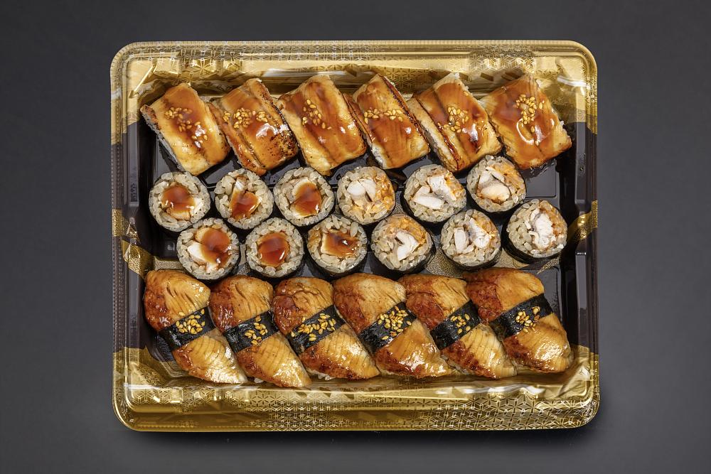 Ролл "Филадельфия" с копчёным угрем, Ролл с копченым угрем, Ролл с копченым угрем в остром соусе, Суши Копченый угорь