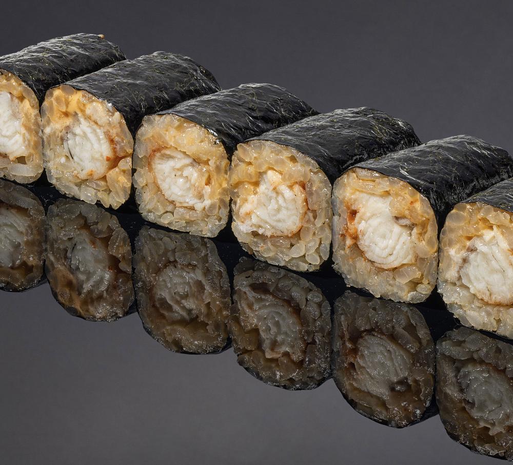 рис для суши, краб камчатский, копченый угорь, лосось, икра летучей рыбы, авокадо, майонез японский, соус унаги, кунжут юдзу, нори